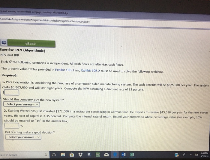 Solved Ebook Exercise 19 9 Algorithmic Npv And Irr Each Of Chegg Com