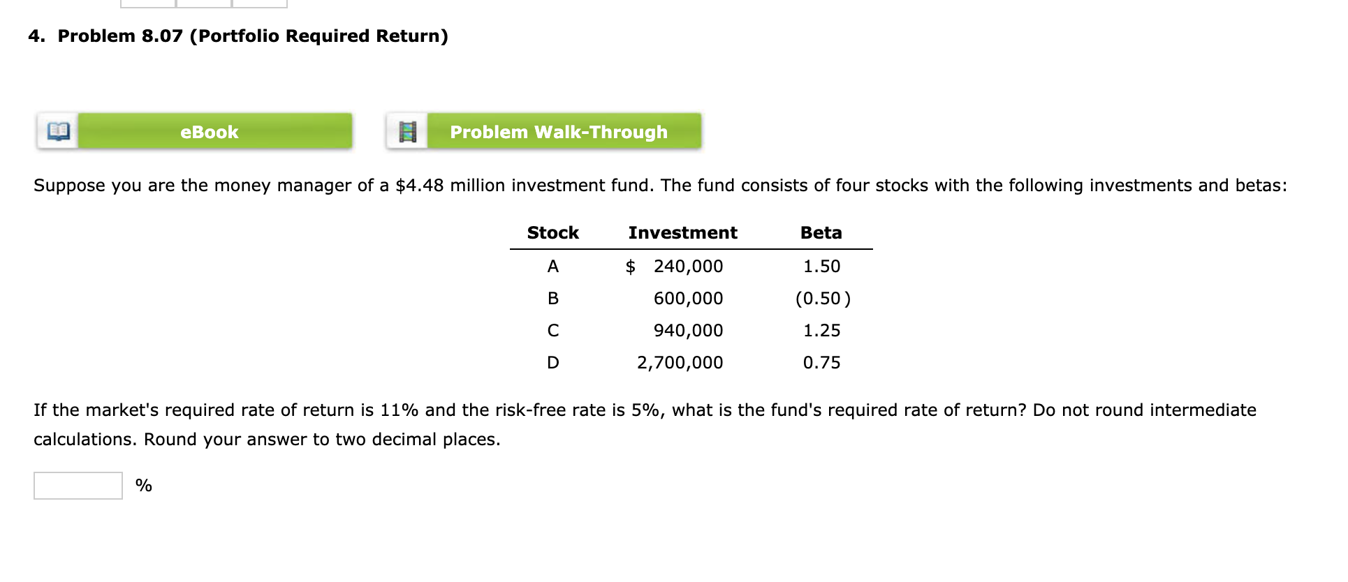 Solved 4 Problem 8 07 Portfolio Required Return Ebook Chegg Com