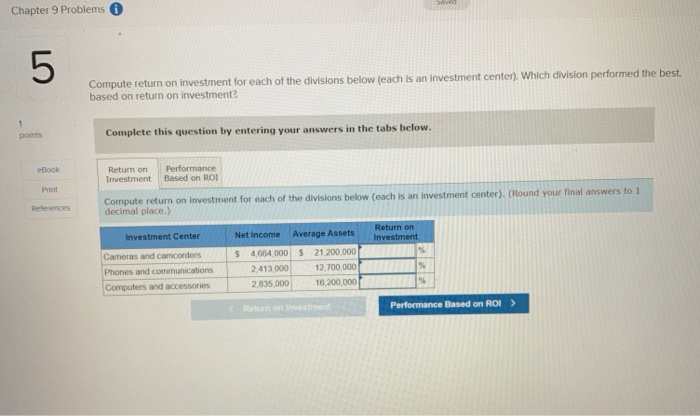 Solved Chapter 9 Problems Compute Return On Investment For Chegg Com